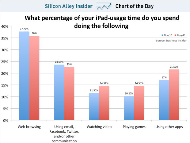 UncategorizedCHART OF THE DAY: How People Actually Use iPads via businessinsider.com Share this: Click to share on X (Opens in new window) X Click to share on Facebook (Opens in new window) Facebook Like Loading... Related Published by Dr. Donna Murdoch Adult Learners. Lifelong Learning and Relevancy. Opinions are my own. View all posts by Dr. Donna Murdoch