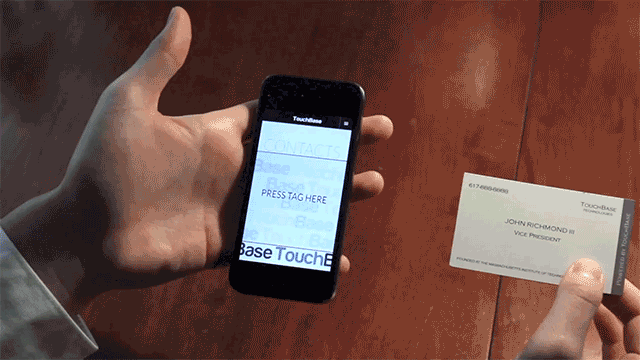 This are amazing. Business cards that can be easily scanned into any smartphone. “The TouchBase cards—which feel exactly like any other business card—are embedded with a distinct pattern of conductive ink that mimics a multi-touch gesture on a smartphone’s display.” From Gizmodo.